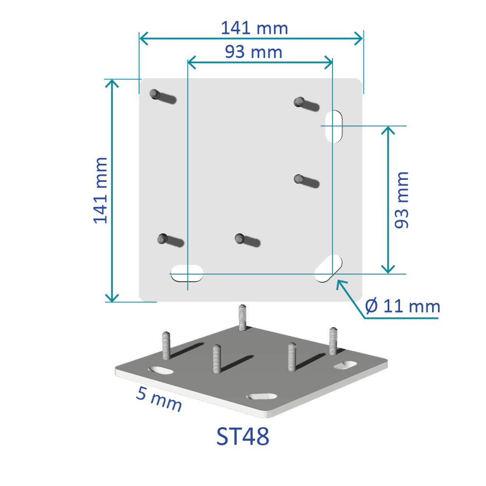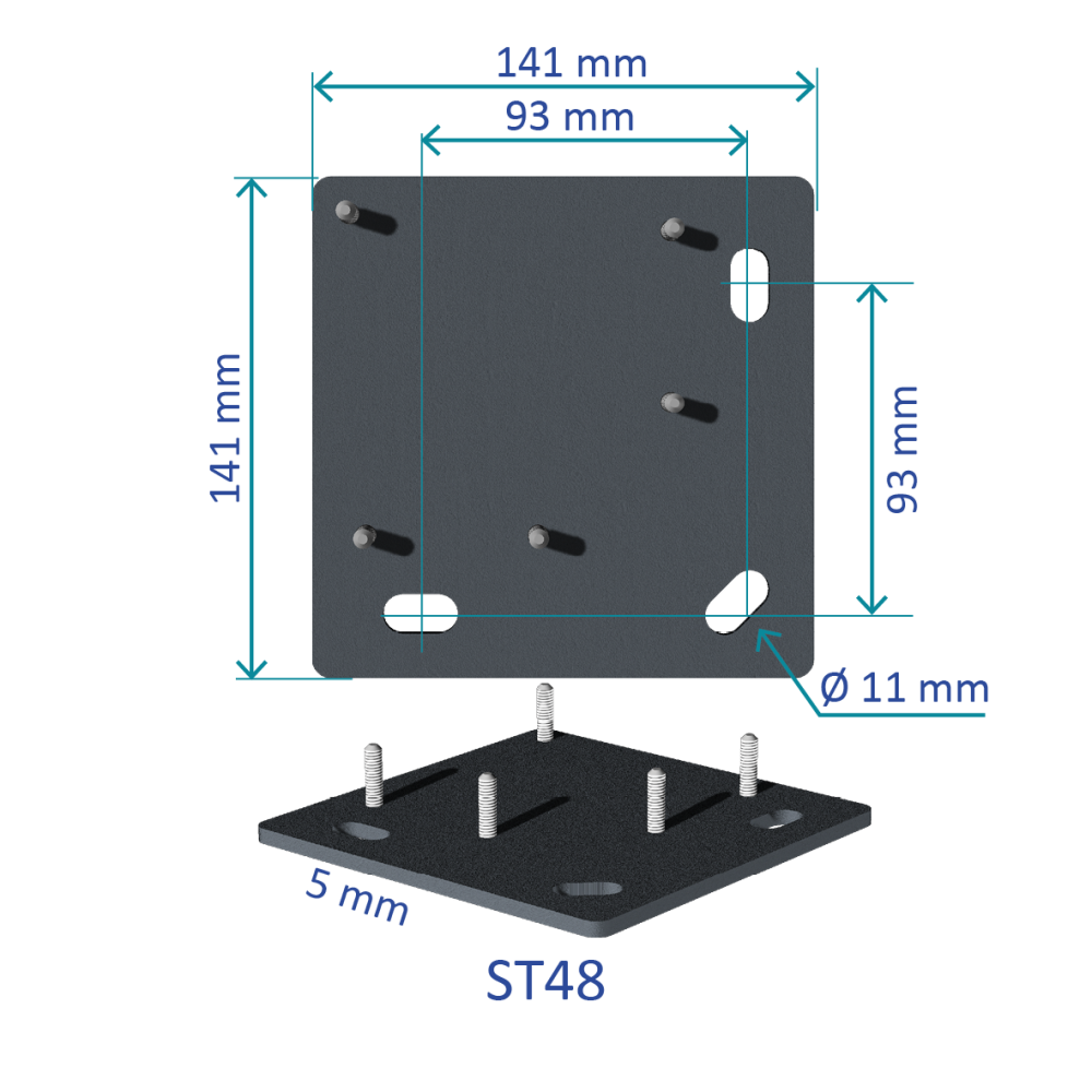 - Platine de fixation murale : H 160 x l 140 mm