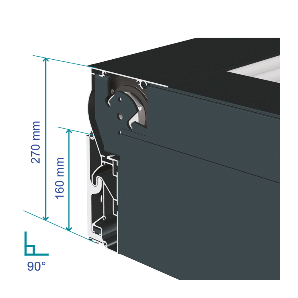 Le système est animé par un moteur tubulaire TELCO® à forte traction, relié à deux courroies crantées renforcées de 20 mm. Ces courroies entraînent la première lame, déclenchant l’ouverture synchronisée de l’ensemble du tablier. Le tout est intégré dans les chevrons latéraux protégés, pour un fonctionnement silencieux et une esthétique impeccable.