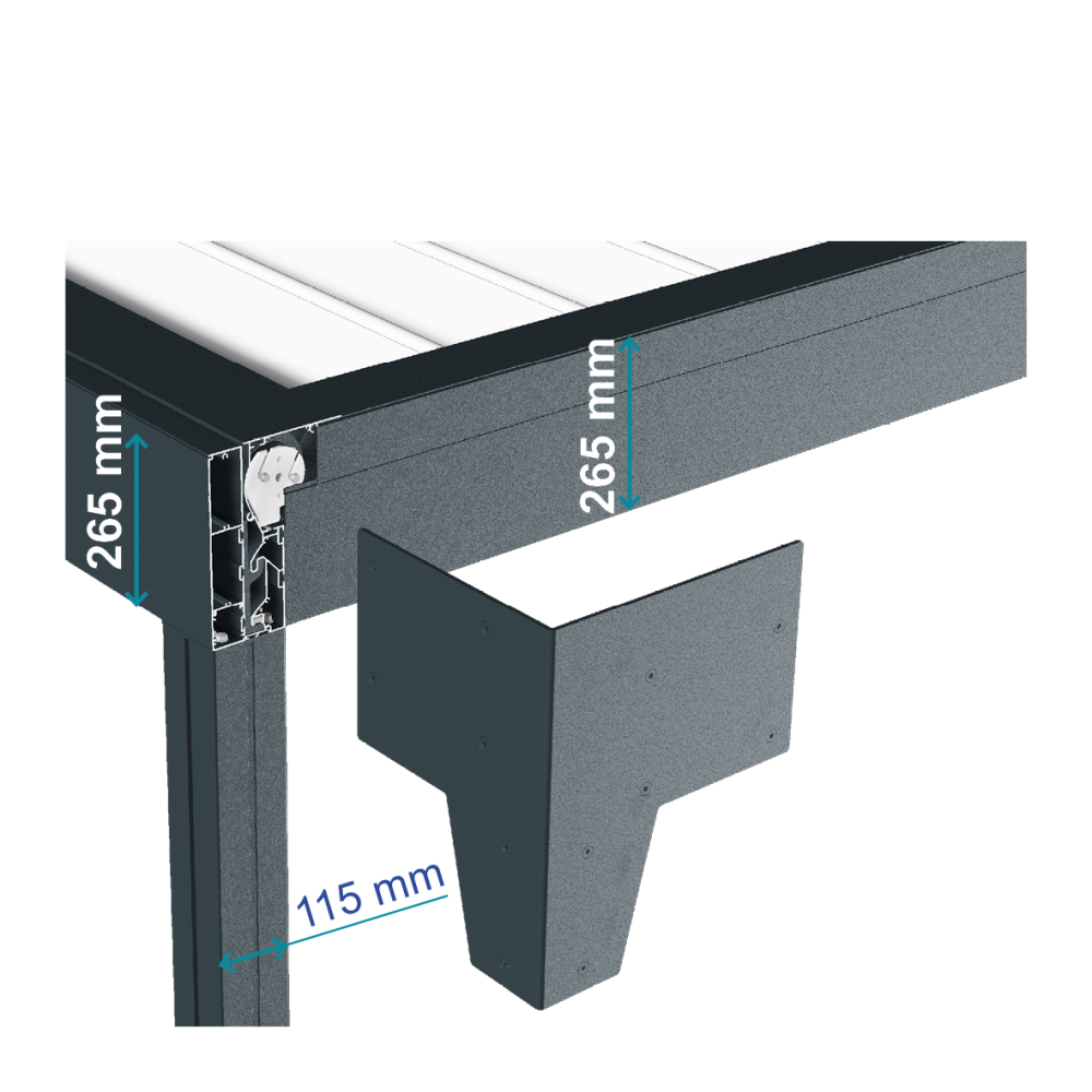Le fonctionnement de la pergola repose sur un moteur TELCO® à forte traction et basse vitesse de rotation, alliant robustesse et longévité. La transmission du mouvement est assurée par des poulies crantées en aluminium extrudé, synchronisant l’ouverture et la fermeture des lames avec fluidité.