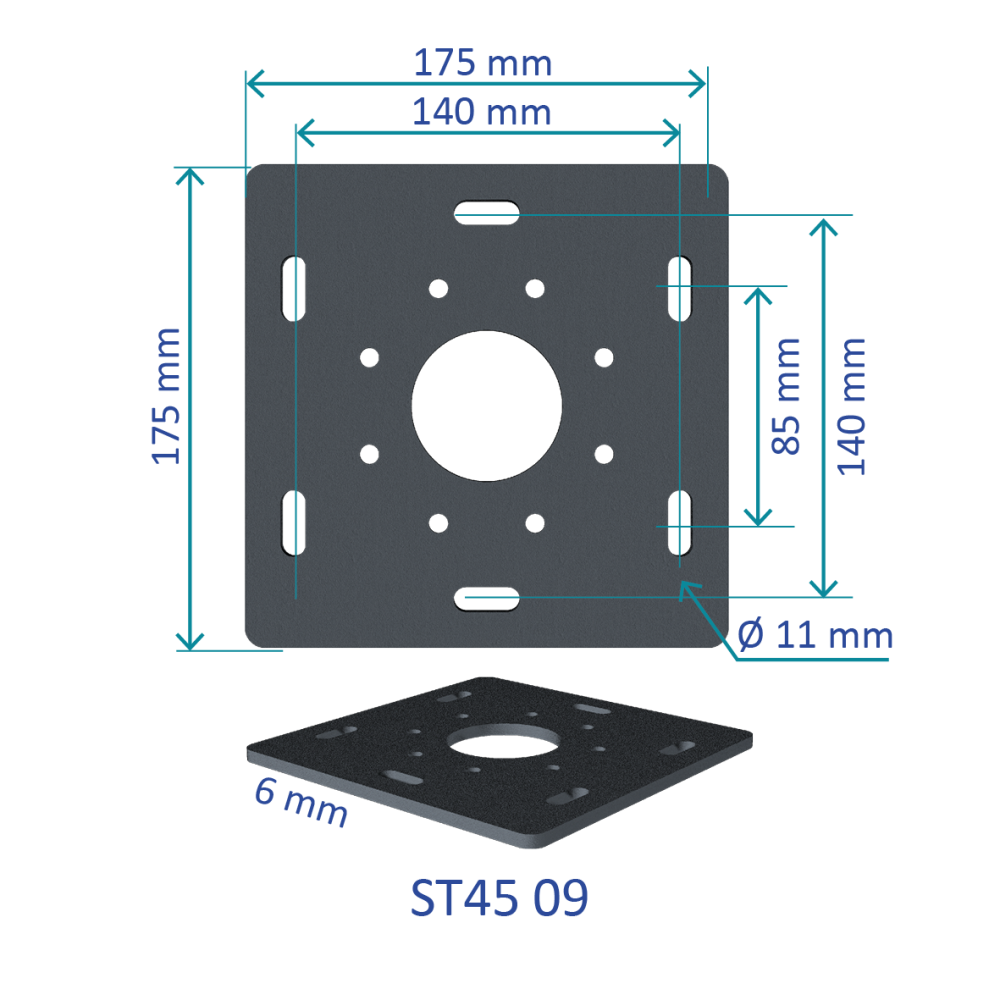 - Dimensions platine de fixation au sol : 175x175mm